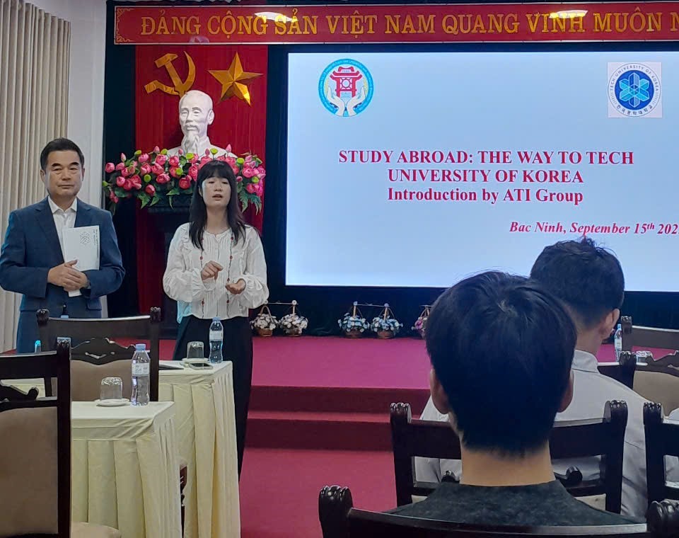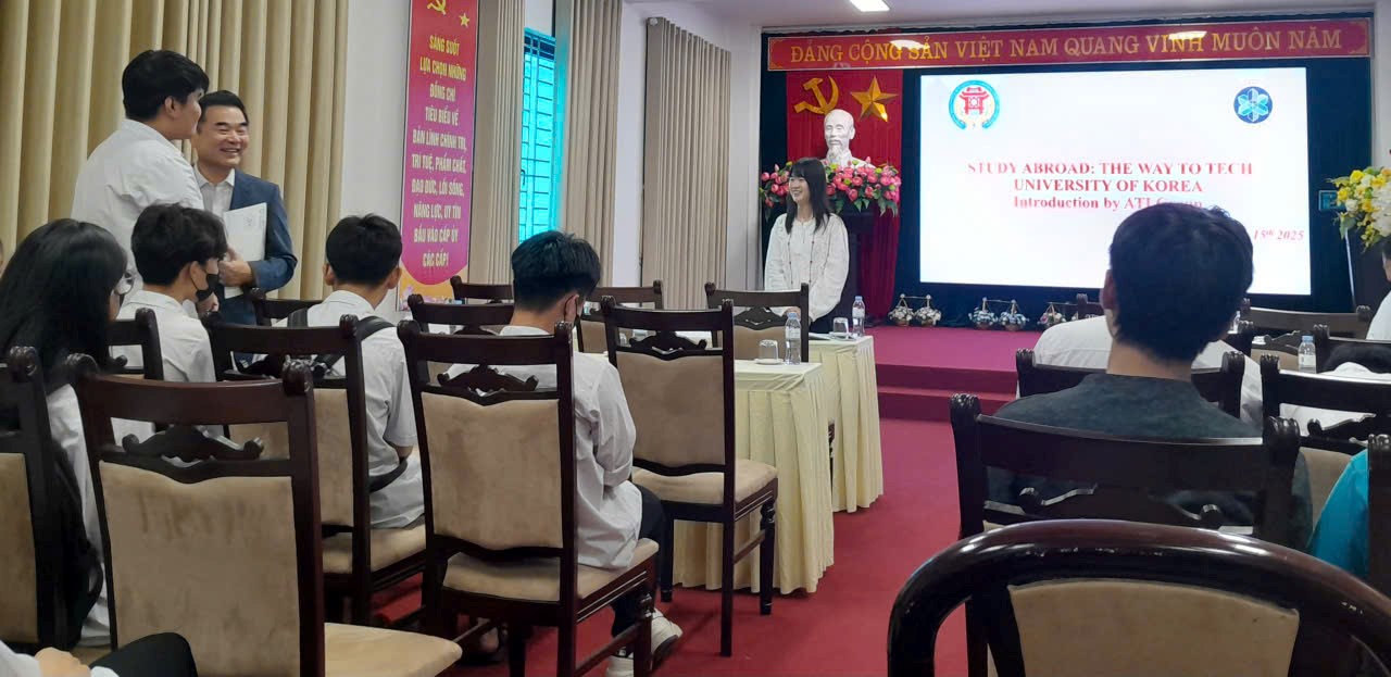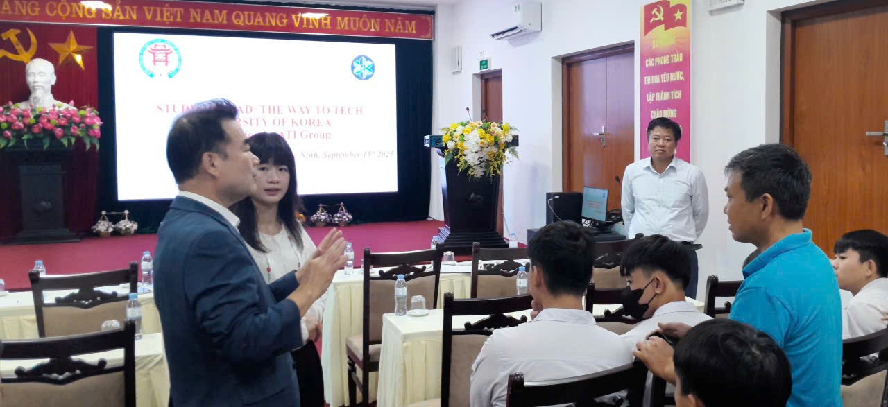Với mục đích Tăng cường hợp tác quốc tế trong nghiên cứu, đào tạo, tìm kiếm cơ hội du học Hàn Quốc cho học sinh, sinh viên…Ngày 15/09/2025 vừa qua, tại Trường Cao đẳng Kinh tế, Kỹ thuật và Thủy sản. Công ty TNHH Giáo dục ATI Việt Nam đã đến làm việc với phía nhà trường và gặp mặt phụ huynh, học sinh, sinh viên để giới thiệu về chương trình du học, thực tập và việc làm tại Hàn Quốc. Mặt khác cung cấp thông tin, học bổng chính thống và lộ trình rõ ràng để hỗ trợ du học sinh Việt Nam trước – trong – sau khi sang Hàn Quốc. Đổng thời tiến hành phỏng vấn học sinh sinh viên của Trường để chọn ra những học sinh ưu tú nhất đáp ứng nhu cầu cho hành trình du học sắp tới.