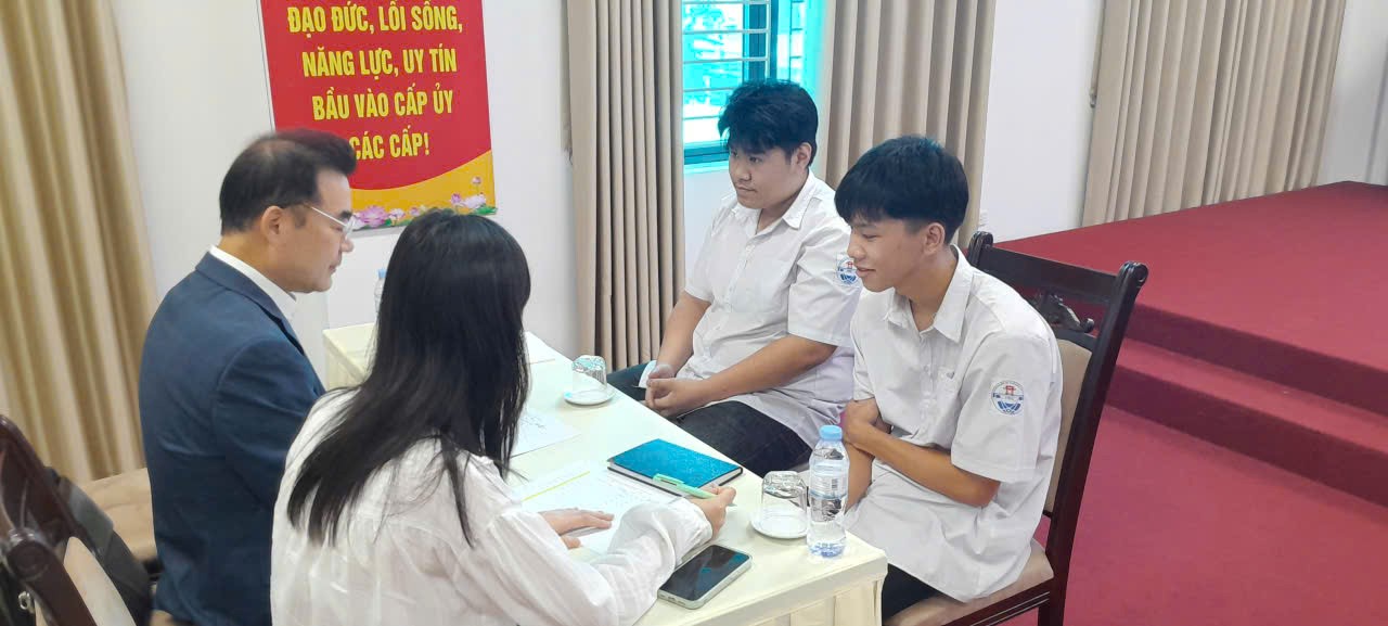 Tại buổi làm việc dù thời gian phỏng vấn không dài nhưng chủ tịch Kim đã nghe các bạn học sinh sinh viên chia sẻ những tâm tư nguyện vọng của mình, những ước mơ, hoài bão của bản thân khi hướng đến hành trình du học sắp tới… chủ tịch đánh giá cao về năng lực học tập, tinh thần thể hiện sự tự tin, bản lĩnh của các bạn học sinh, sinh viên