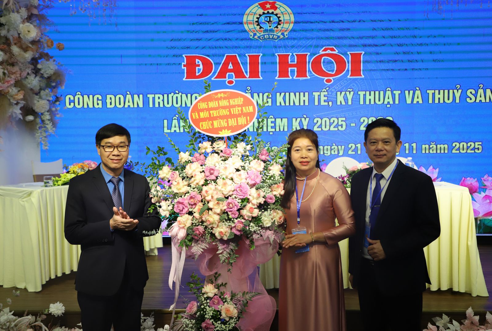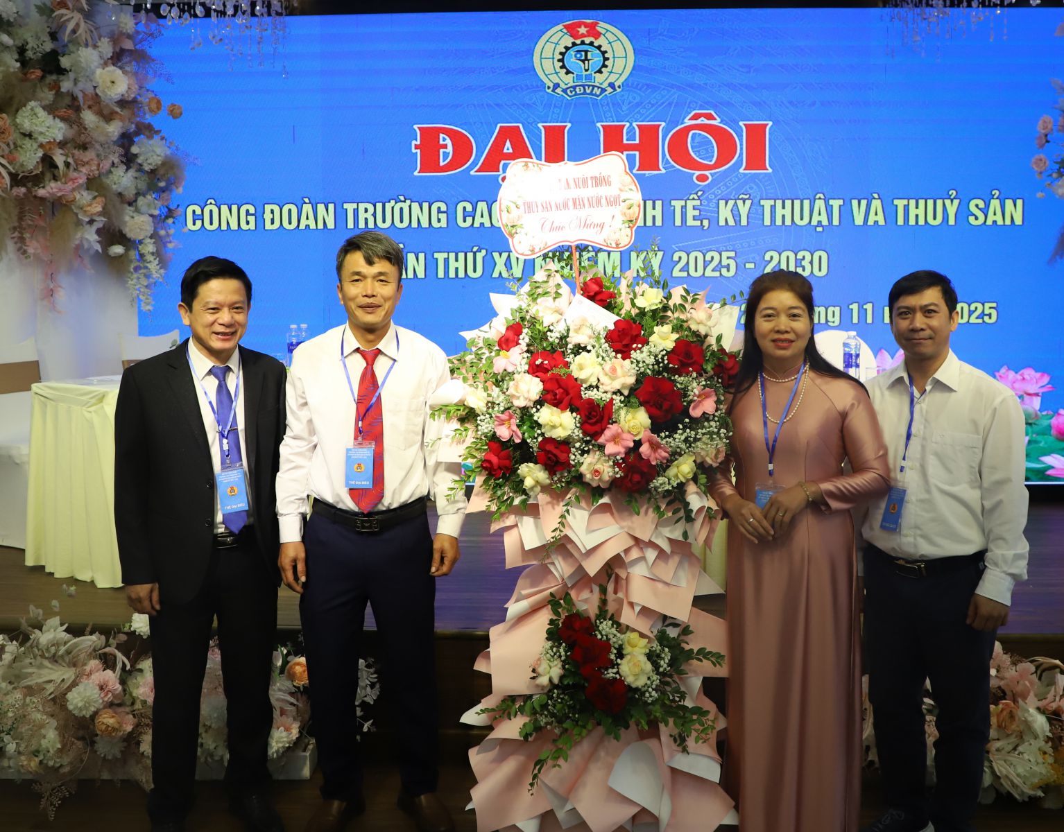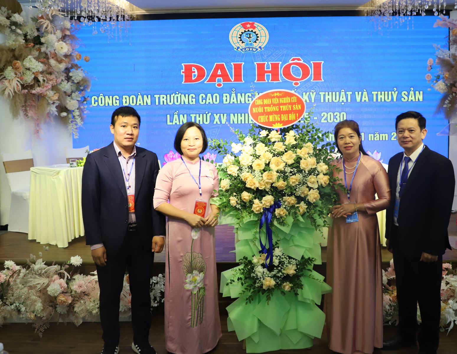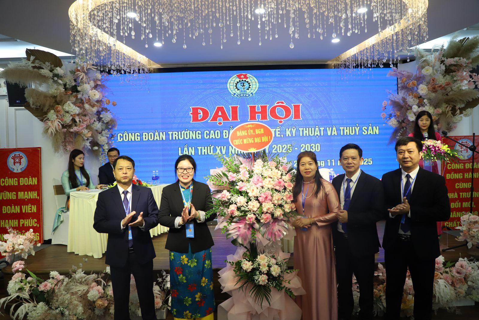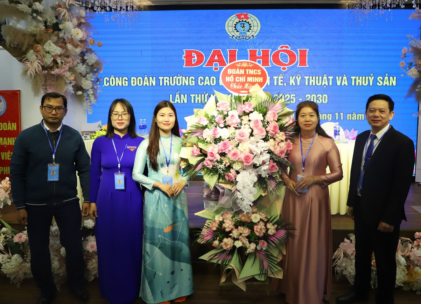 Đảng ủy, Ban giám hiệu trường Cao đẳng Kinh tế, Kỹ thuật và Thủy sản tặng hoa chúc mừng đại hội.