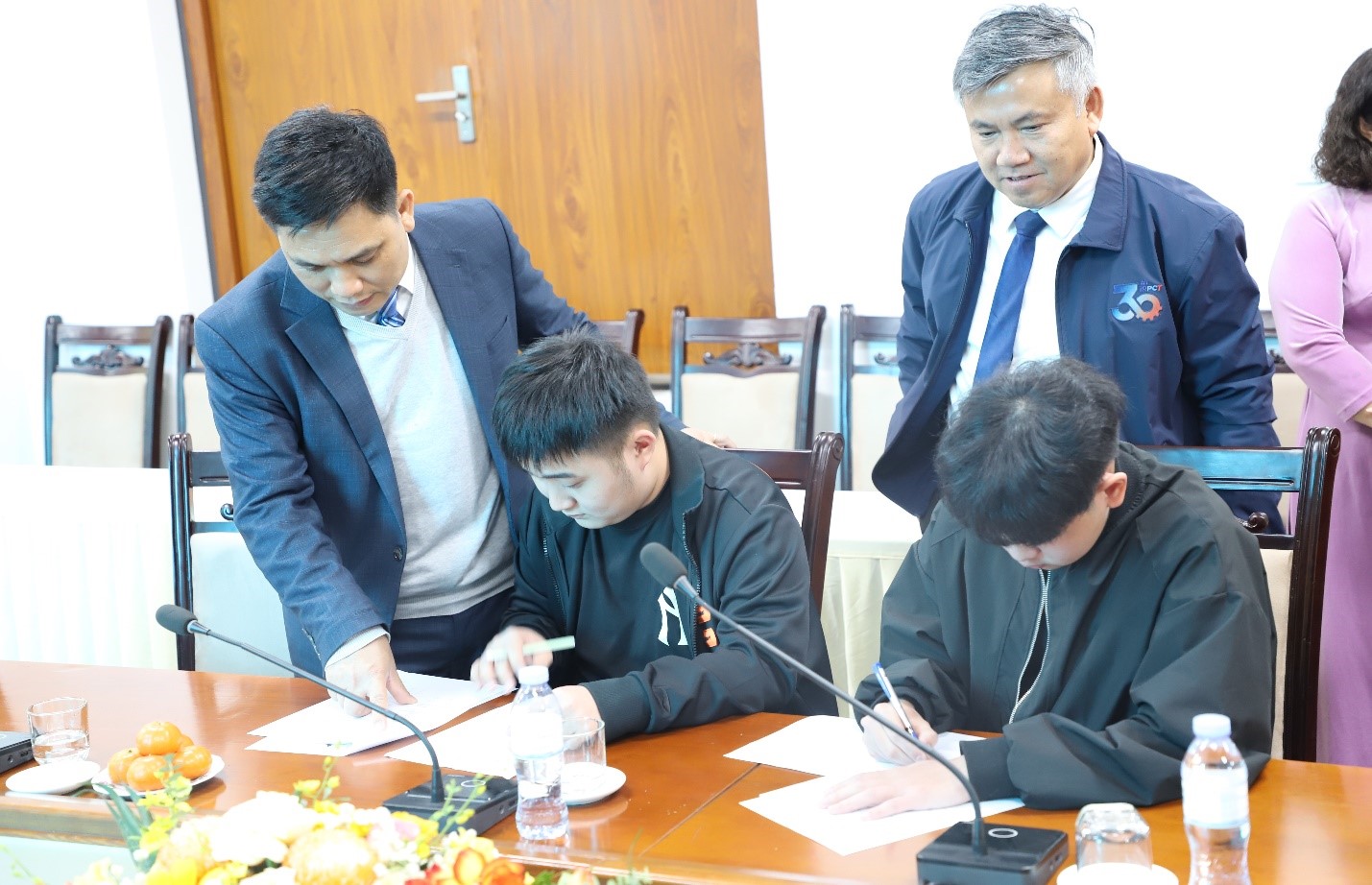 Ảnh 1. Ban giám hiệu nhà trường cùng đoàn đại biểu của Trường Cao đẳng Công nghệ IRPC (IRPC Technical College)