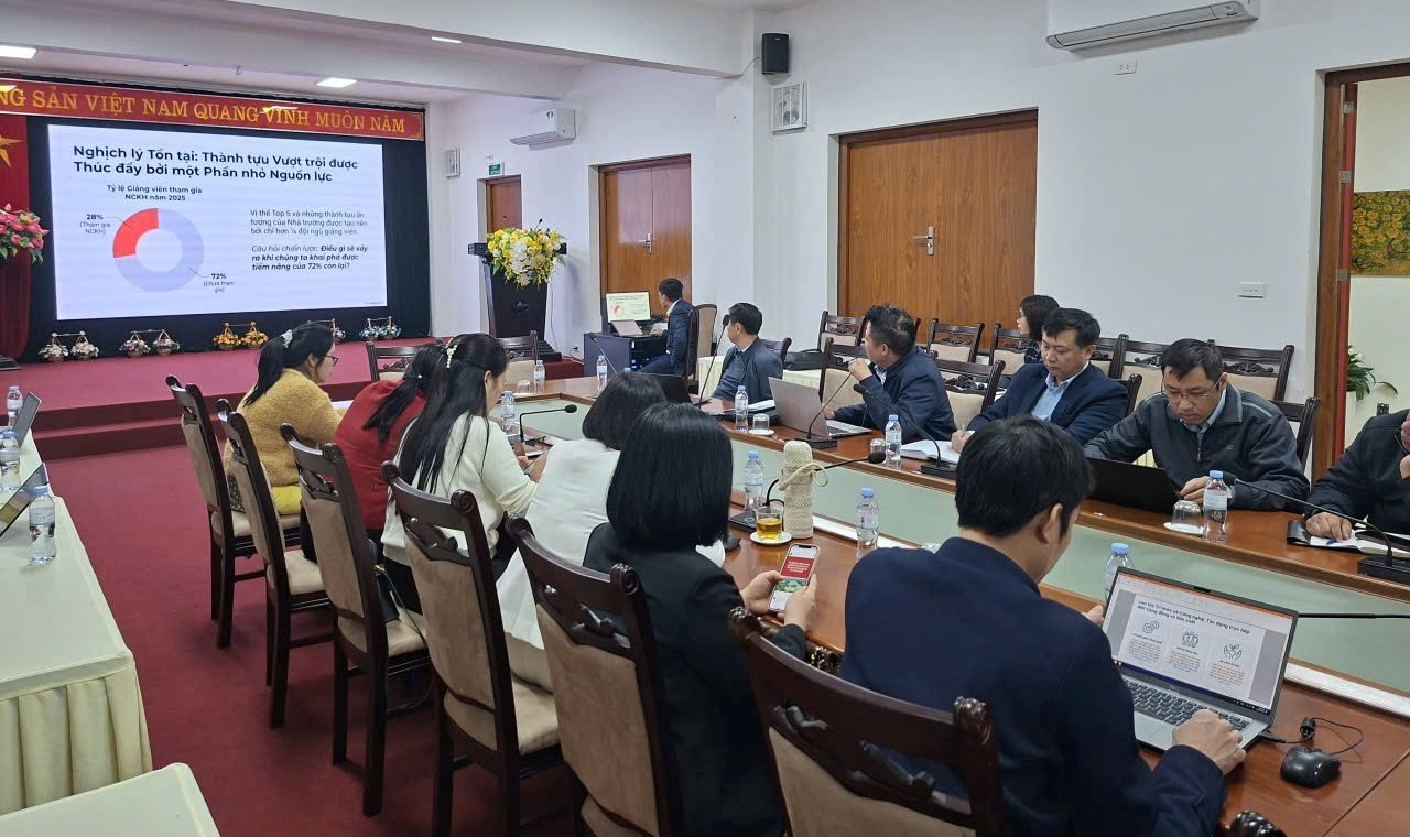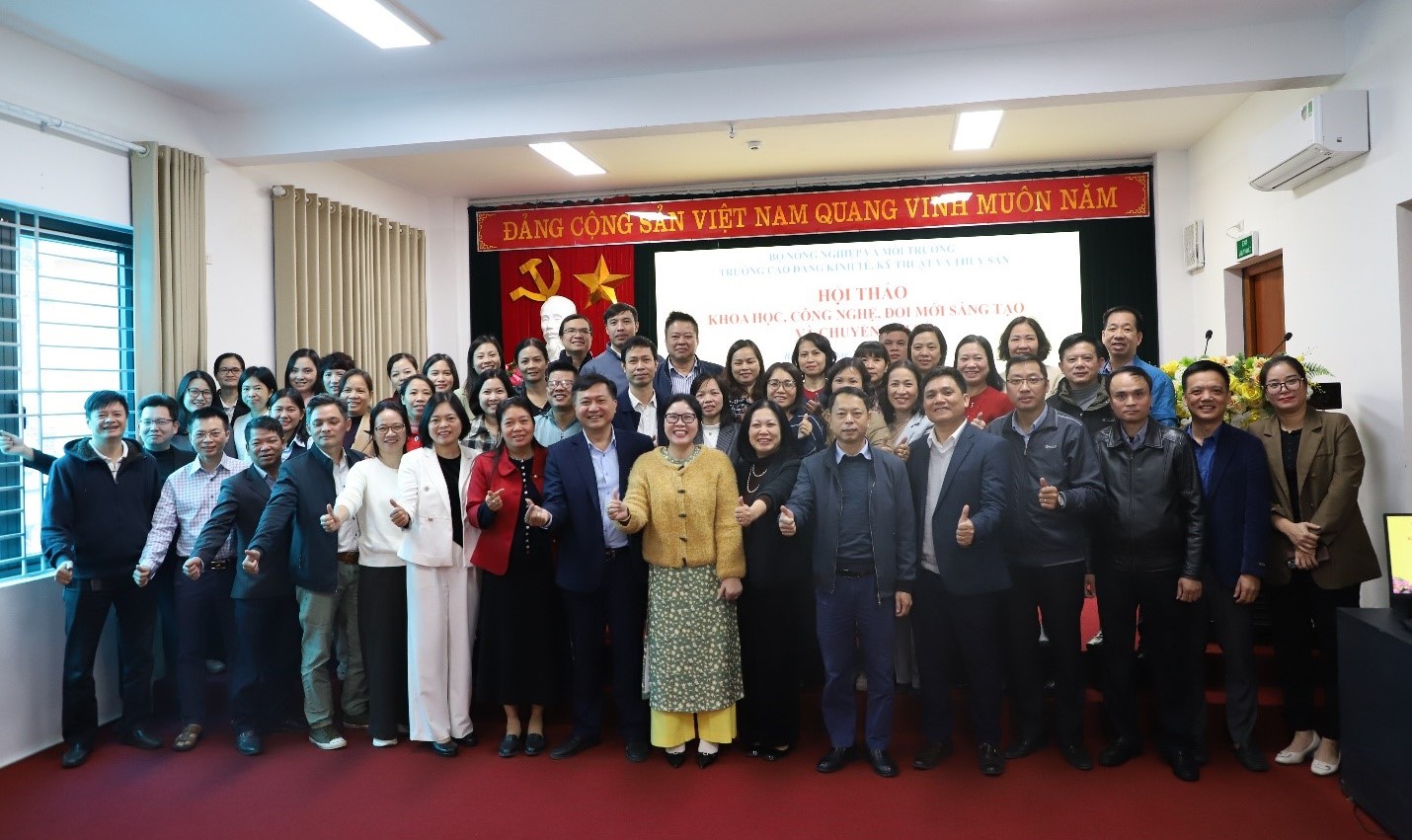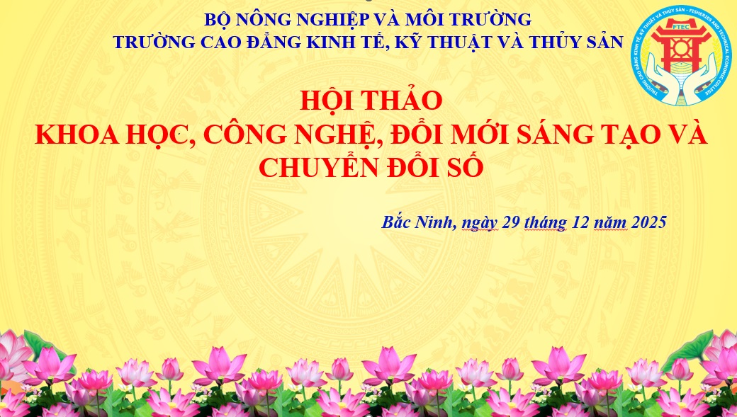 Bám sát tinh thần và nội dung cốt lõi thực hiện Nghị quyết 57-NQ/TW của Bộ Chính trị ngày 22/12/2024 về đột phá phát triển khoa học, công nghệ, đổi mới sáng tạo và chuyển đổi số quốc gia. Sáng ngày 29/12/2025, Trường Cao đẳng Kinh tế, Kỹ thuật và Thủy sản đã tổ chức 01 buổi Hội thảo khoa học, công nghệ, đổi mới sáng tạo và chuyển đổi số. Với mục đích cập nhật hoạt động khoa học, công nghệ và đổi mới sáng tạo của nhà trường, thảo luận định hướng phát triển khoa học, công nghệ và đổi mới sáng tạo, chia sẻ kinh nghiệm khi tham gia nhiệm vụ nghiên cứu khoa học, thảo luận các giải pháp trong việc phát triển khoa học công nghệ và đổi mới sáng tạo, từ đó nâng cao vai trò, nhận thức của cán bộ giảng viên, thúc đẩy phong trào nghiên cứu khoa học, công nghệ và đổi mới sáng tạo của Nhà trường.